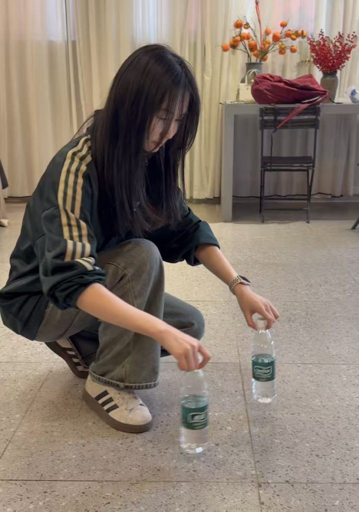 咱们在茶歇区稍作休息,倒瓶子挑战开启!谁能把含有半瓶水的矿泉水瓶转一圈稳稳立起来,谁就能立刻收下红包!大家赶紧拿着水瓶练习起来了,场内响起了乒乒乓乓的声音😁